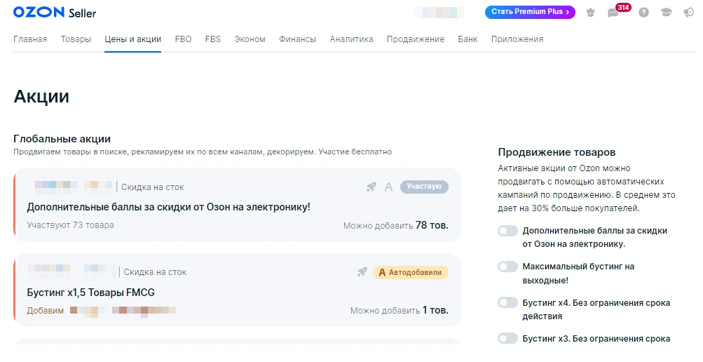 - Показать как управлять акциями в личном кабинете OZON