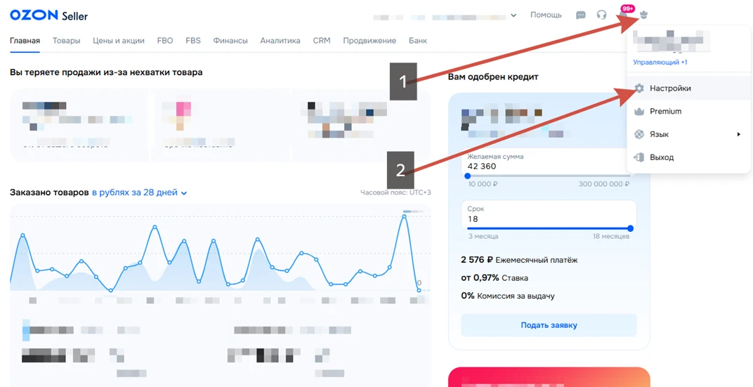 1. Авторизоваться в личном кабинете селлера под аккаунтом управляющего. Для этого перейти по ссылке: https://seller.ozon.ru/