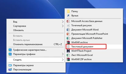 5. На рабочем столе компьютера создать текстовый документ формата "txt" и добавить в него токен API ключа.