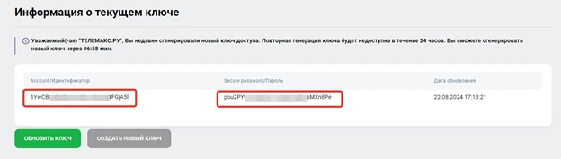 ВАЖНО: не закрывать появившееся окно до момента копирования ключей в текстовый документ.