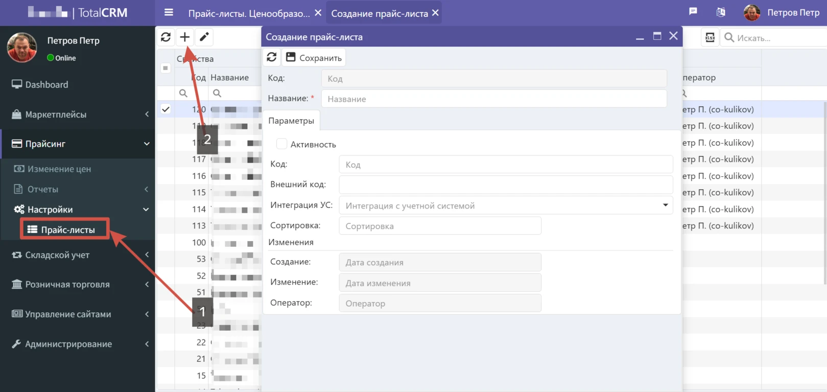 Путь к созданию нового прайс-листа: Прайсинг --> Настройки --> Прайс-листы --> Создать новый