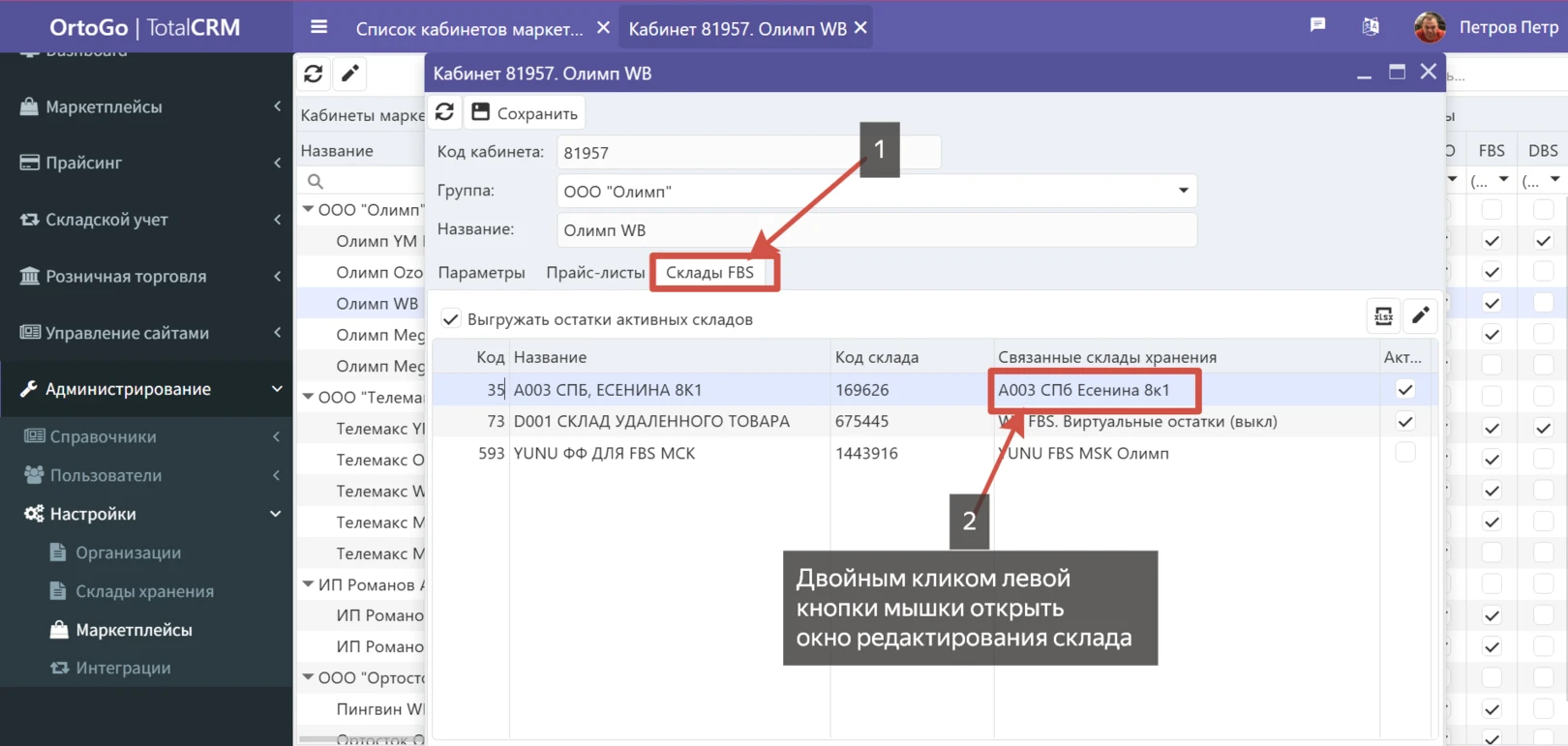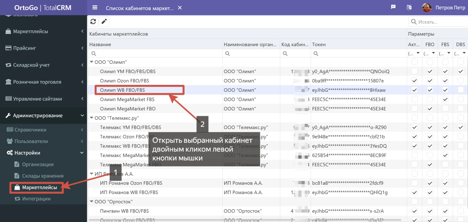 Путь к разделу: Администрирование --> Настройка --> Маркетплейсы --> Открыть редактирование выбранного кабинета