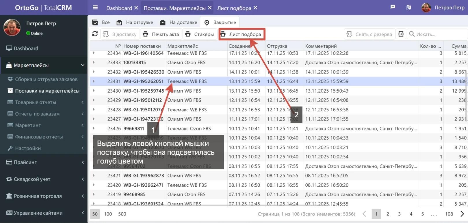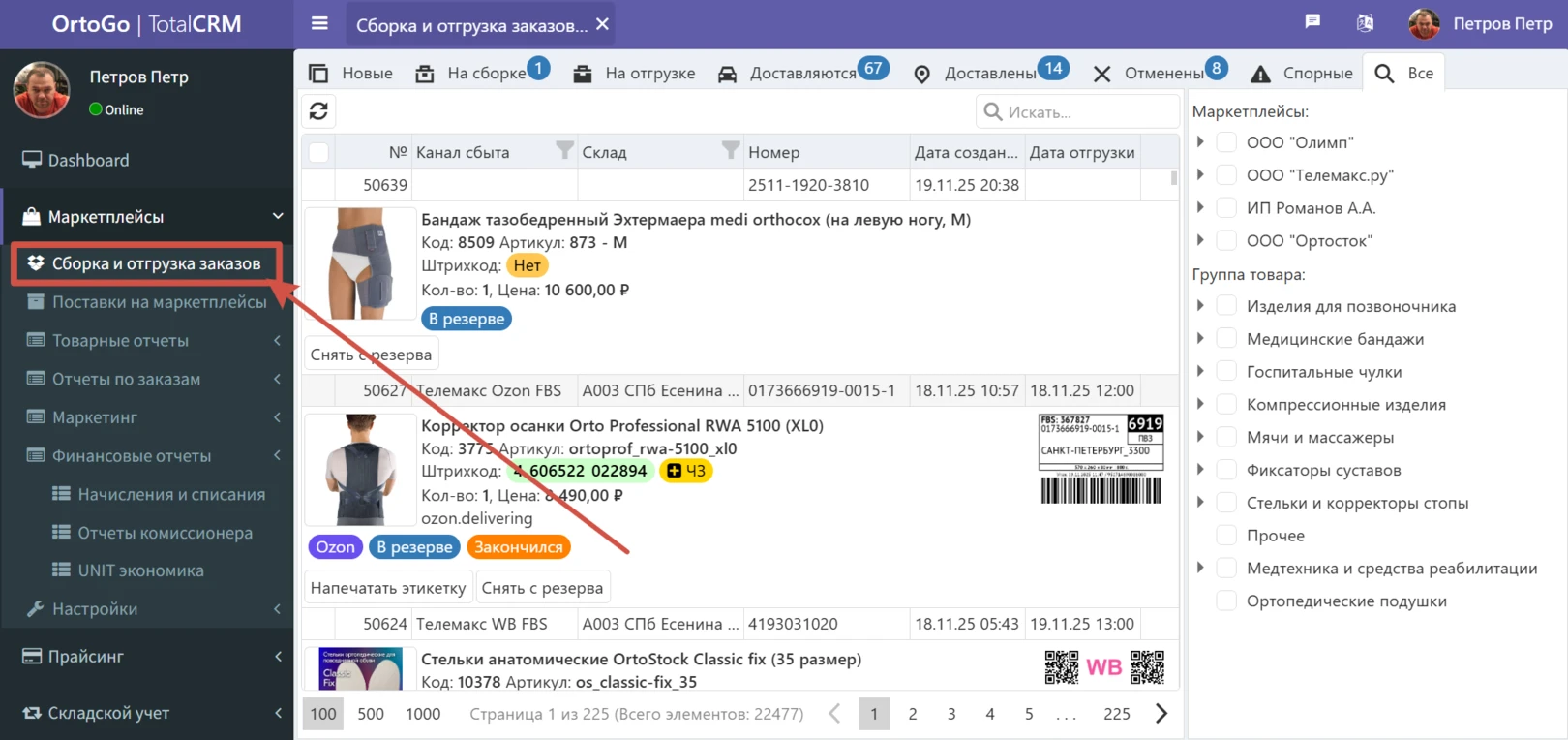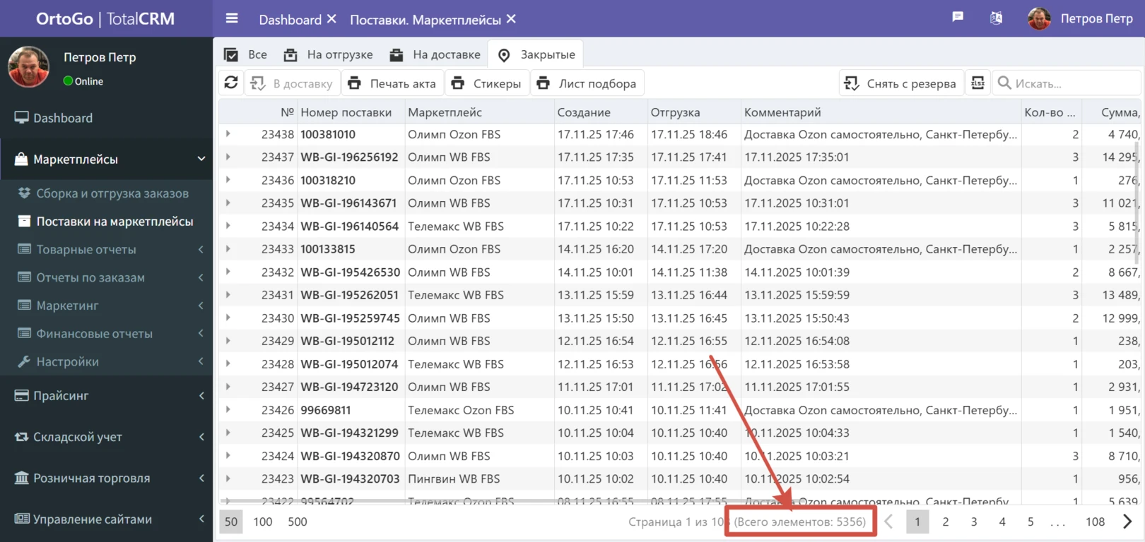 В TotalCRM разработан инструмент для обработки заказов со всех кабинетов в едином окне.