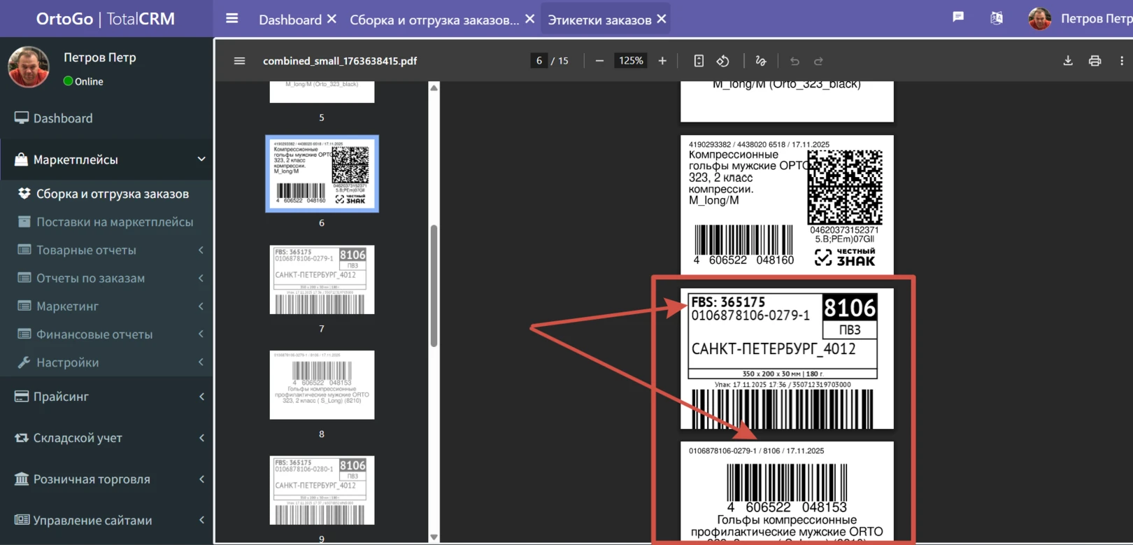 Далее сотруднику необходимо распечатать наклейки и нанести их на заказ.